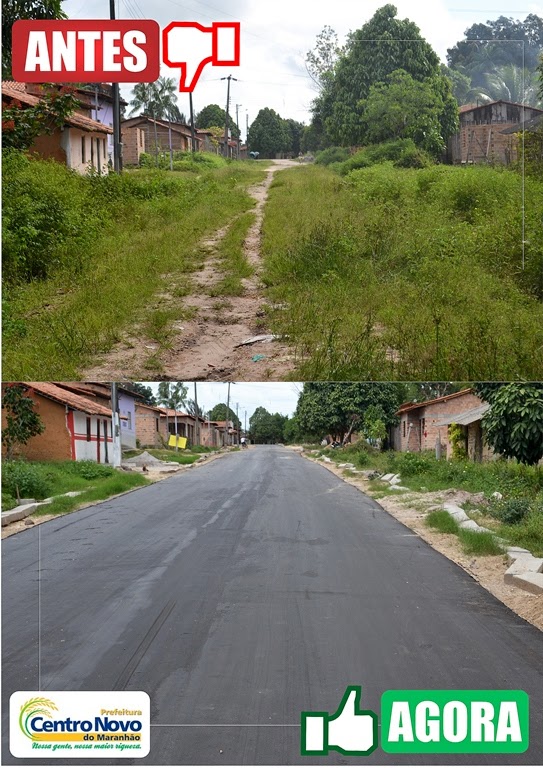 cerca de 12 ruas totalmente transformadas, o município de Centro Novo do Maranhão